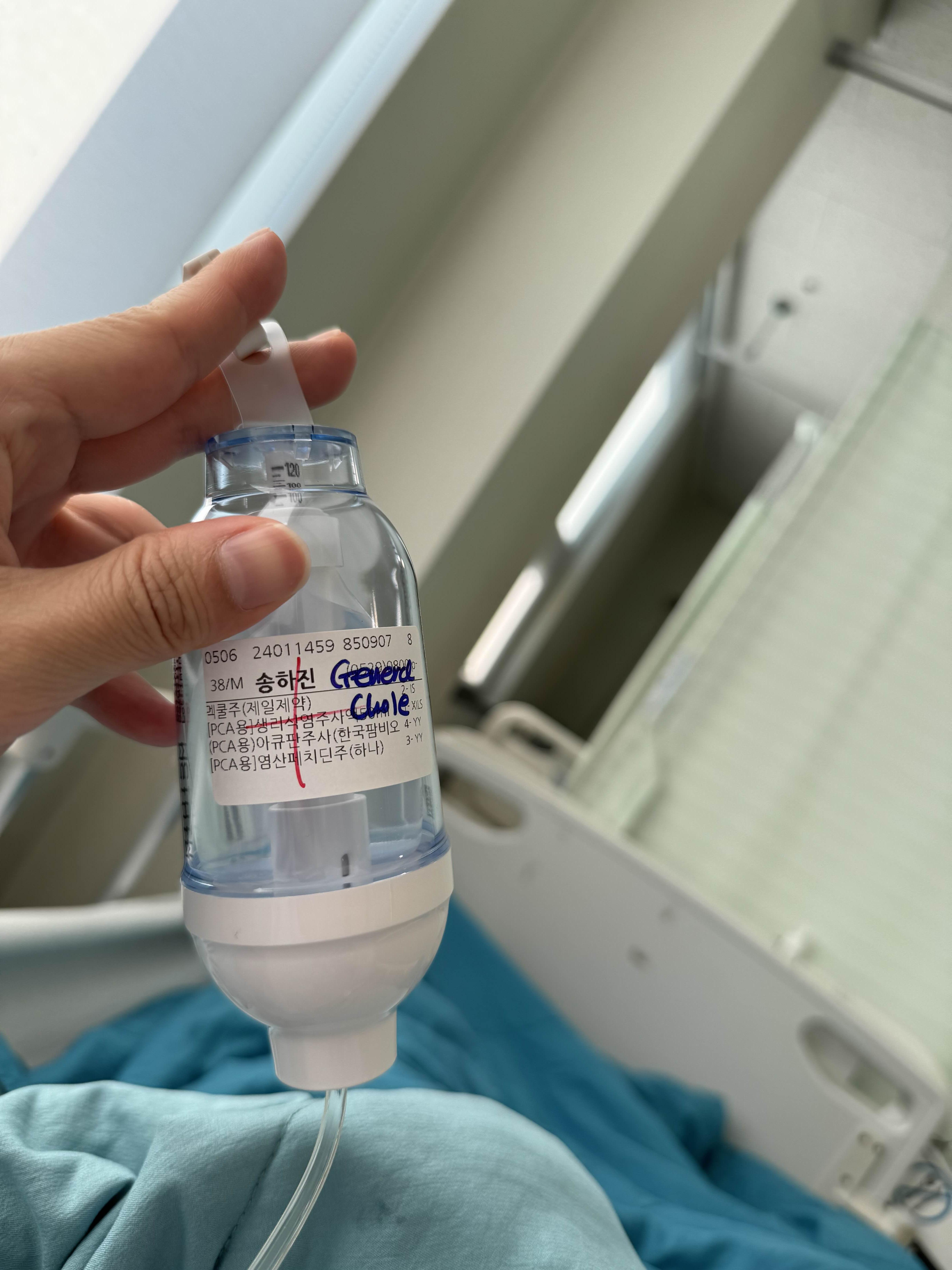 수액이랑 영양제랑 무통이랑 줄줄이 달림.