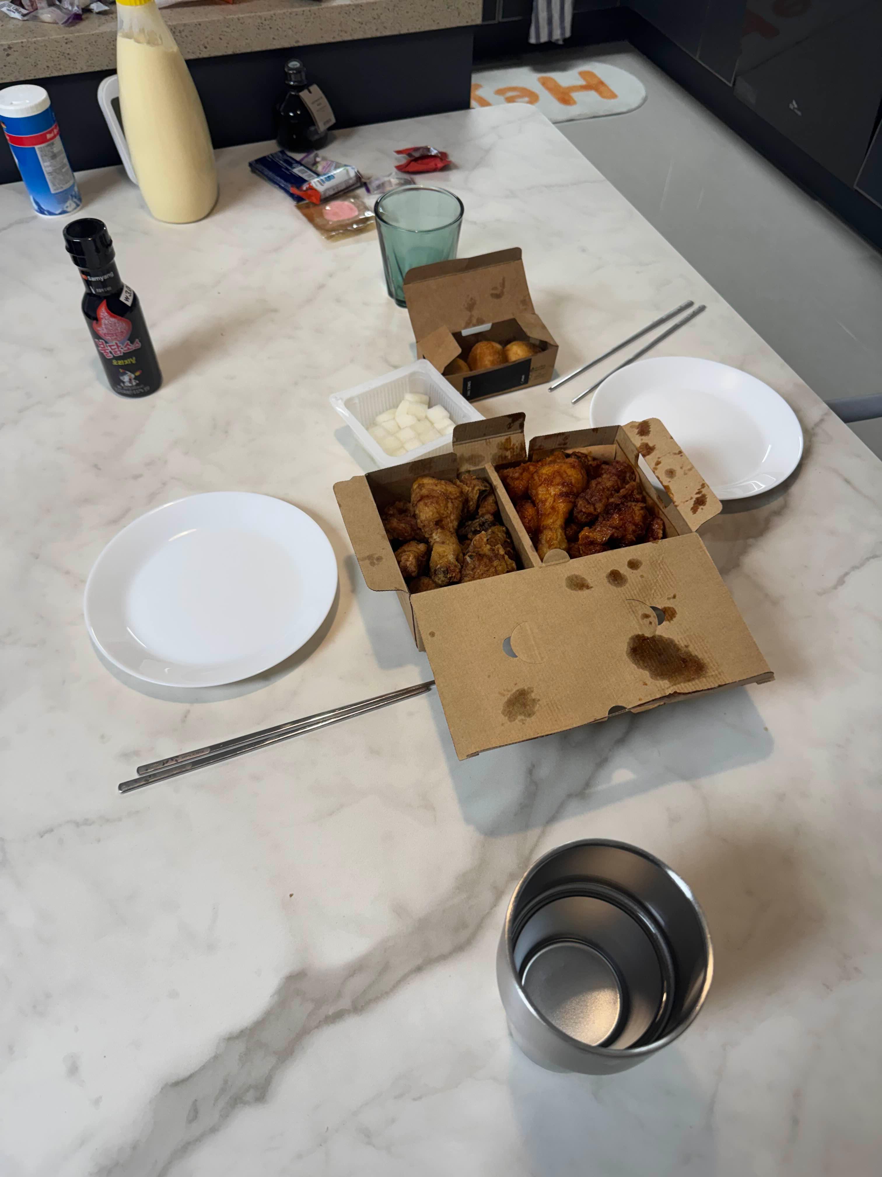 오랜만에 똠양을 먹고 있는데 사장님이 커피선물해 주심.